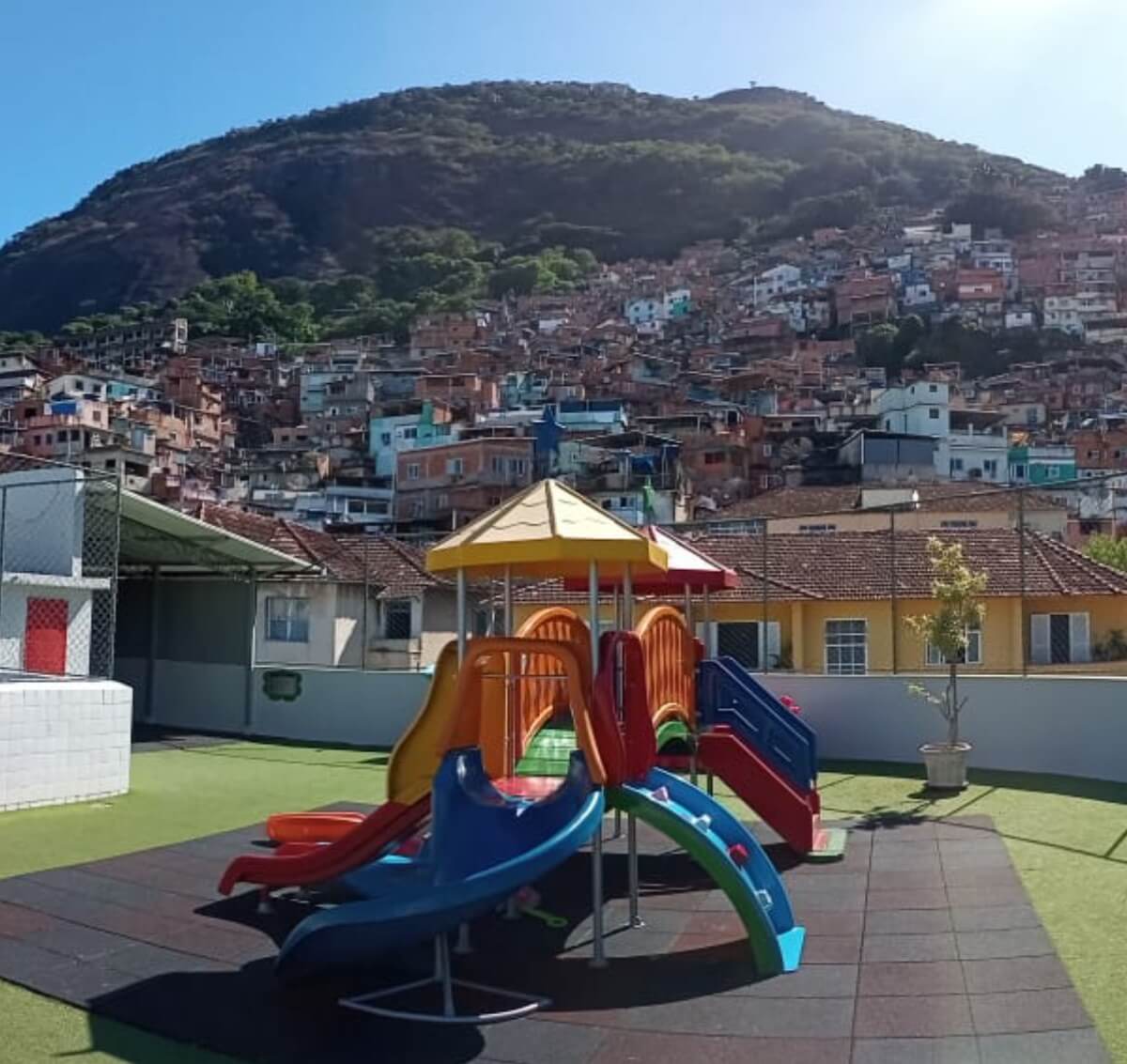 No início da década de oitenta, a ação dos Padres Jesuítas na comunidade se dava por meio das feiras de solidariedade Inaciana realizadas no Colégio Santo Inácio, também situado em Botafogo; cuja arrecadação mantinha duas creches; a Unidade de Atendimento ao Pré-Escolar Anchieta – UNAPE, inaugurada em 1980 e a Casa Santa Marta inaugurada em 1984.